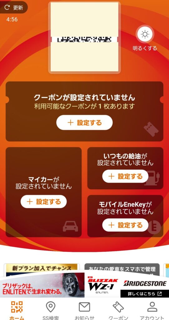 自分がよく行くサービスステーションを登録しておくとクーポンがもらえます。